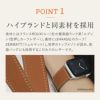 使い込んでから馴染む硬いカーフではなく、適度なしなやかさを持った柔らかなカーフを使用しています。身に着けた瞬間に肌なじみの良さを感じていただけます。