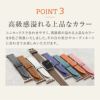 ほどよいしなやかさと張りが上品で、カーフの中では汚れや水にも比較的強く、柔らかな発色時計を引き立てます。