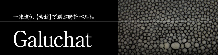 GALUCHAT ガルーシャ エイ革を使用した厚みのある時計ベルトです。鋭い剣先と丸みを帯びた尾錠から生まれる造形美と、エイ革ならではの宝石のような輝きから重厚な高級感を醸し出しております。 |