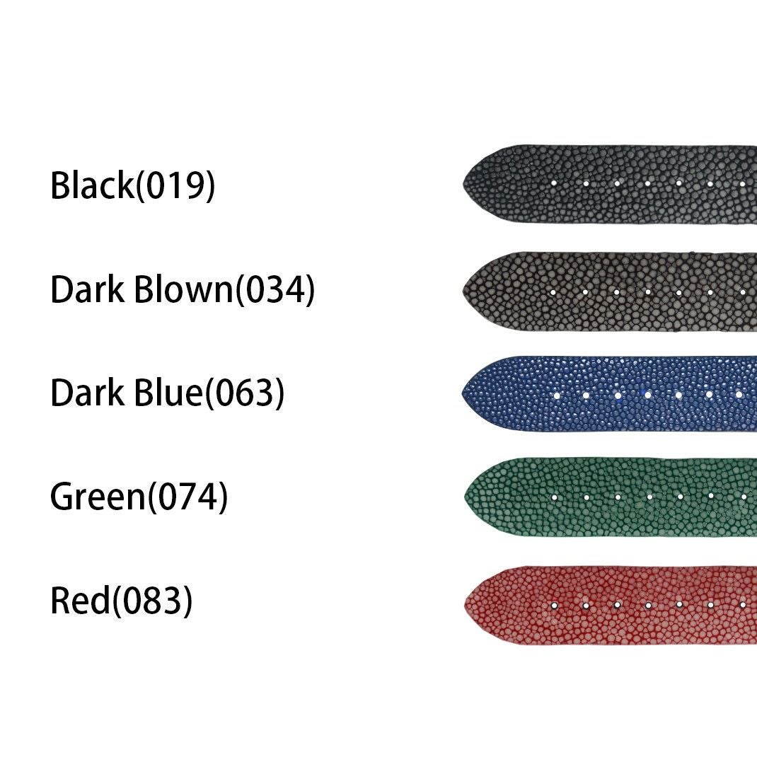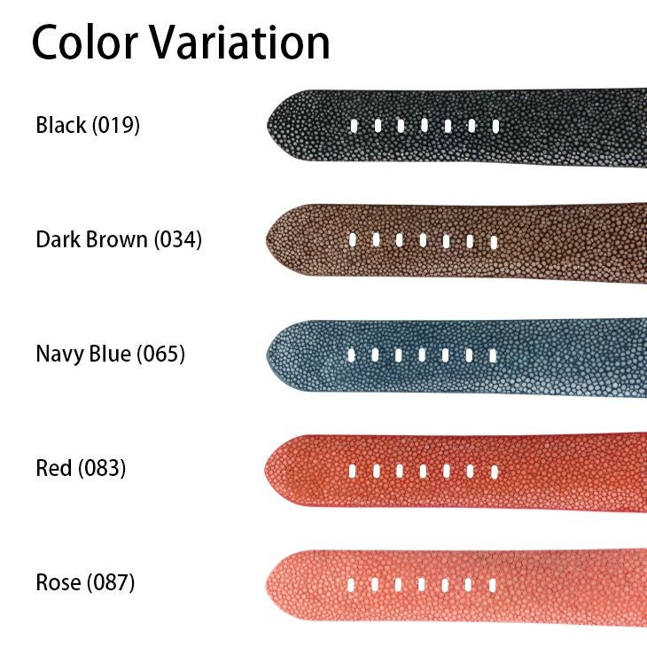 TYPE PNR44 タイプピーエヌアール44 エイ革を使用した厚みのある時計ベルトです。 エイ革ならではの宝石のような輝きが、重厚な高級感を醸し出します。 カラーも5色展開とお好みに合わせてお選びいただけます。 |