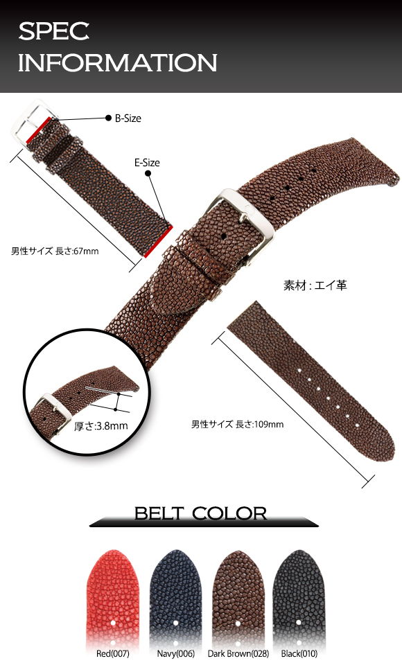 時計ベルトをご注文の際は、ベルト取り付け幅(E)を。
