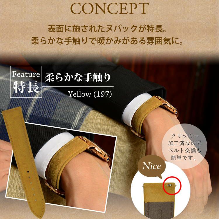 TYPE DW タイプ ディーダブリュー 全15色のカーフ素材を使用したモデル。ダニエルウェリントン用としてお勧めの商品です。裏材には水・汗に強い合成皮革「LORICA(ロリカ)」を使用しております。14mm、17mm、18mmは長さが女性サイズとなります。18mm、20mmについては時計側と尾錠幅が同サイズの「ストレート」と呼ばれる形状となります。 |